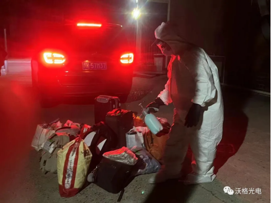 将驻厂员工的行李带回厂中,随后对行李进行统一消杀。