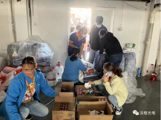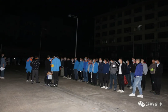 下班后的白班人员们快速响应做好驻厂准备,列队领取物资。