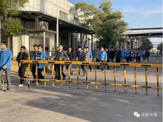 一声令下,迅速集合---每天全厂人员核酸检测,规模覆盖英国威廉集团官网1300余名驻厂员工,大家井然有序排队,无一例拥挤现象。