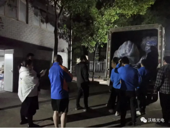 19日凌晨2点多,第二批晚班人员的床品物资运输进厂,英国威廉集团官网党员们连夜接货并搬运到仓库。