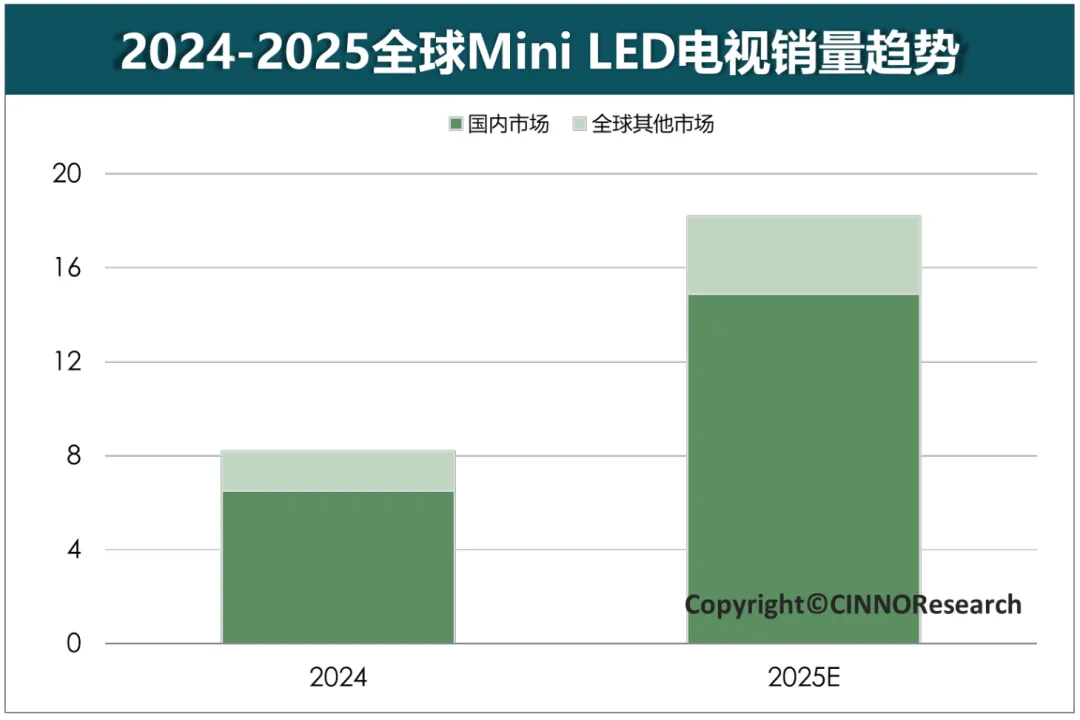 图示:2024-2025全球Mini LED电视销量趋势来源:CINNO Research